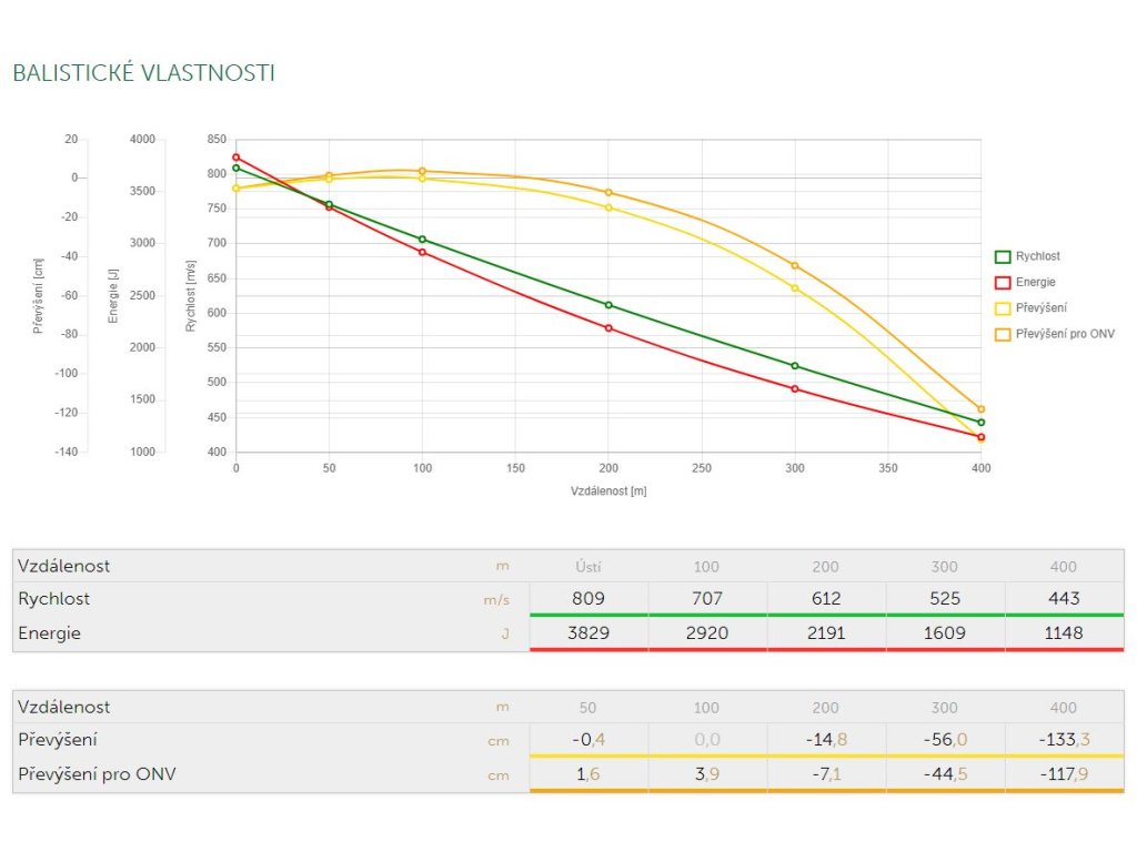 | Typ střely: | Bezolovnatá, Bondovaná, S řízeným rozkladem |