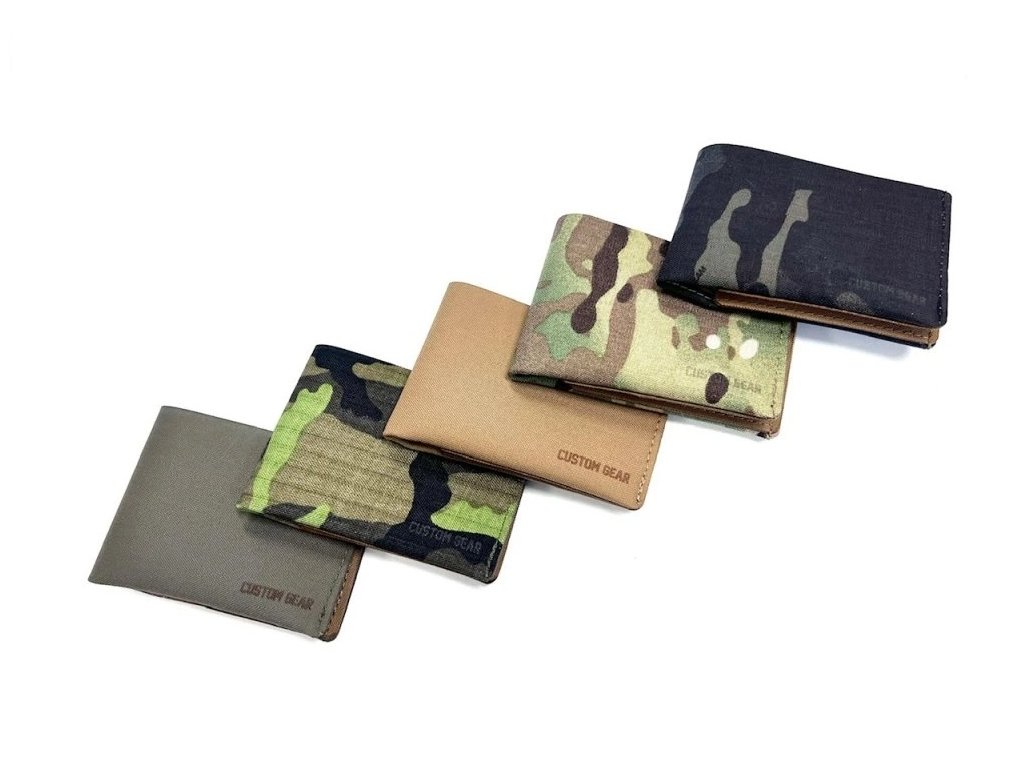 Minimalistická peněženka, kam pohodlně vložíte bankovky, drobné mince, kreditní karty, lovecký lístek atd. Standardně je na vnějšní straně vygravírovaný nápis CUSTOM GEAR a uvnitř v levé části vlajka České republiky.