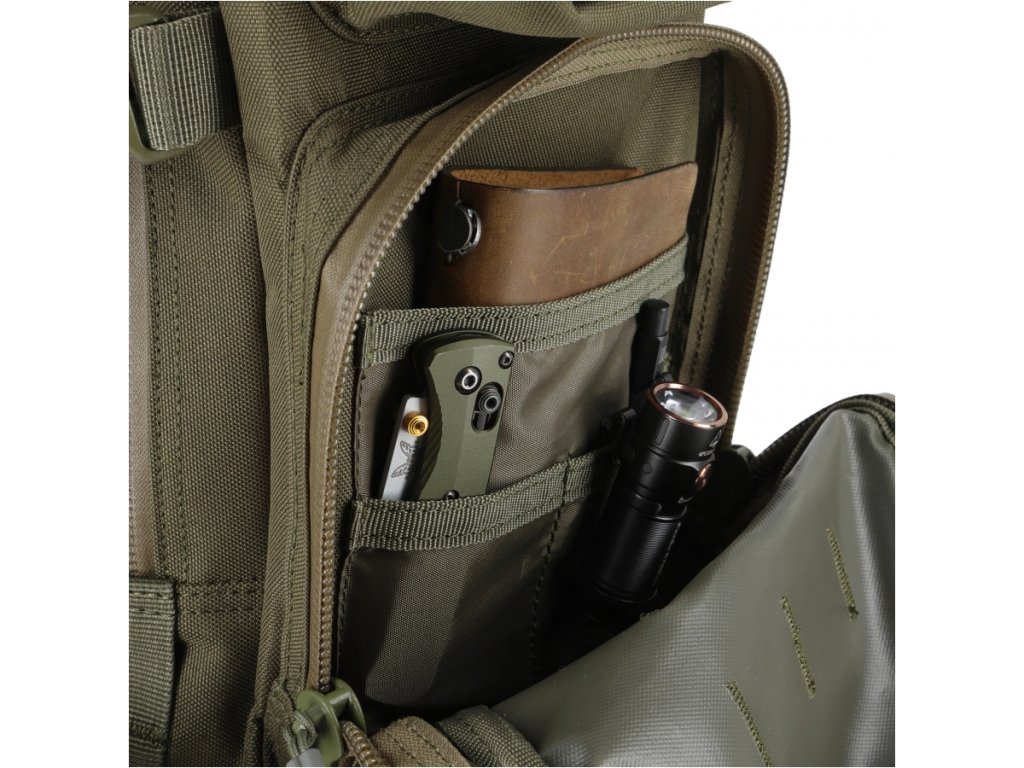 Objem 25 litrů je navržen pro maximální využitelnost. Dvě velké hlavní komory uzavíratelné voděodolnými zipy s praktickými taháčky ve tvaru kroužků umožňují rychlý a intuitivní přístup k obsahu. Uvnitř najdete menší kapsy pro přehlednou organizaci a dvě přední kapsy – včetně spodní s organizérem – umožňují rozdělit drobnosti, elektroniku nebo EDC vybavení.