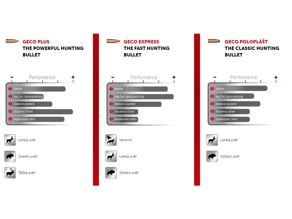 isuniversally applicable and is the right choice in almost all hunting situations. It works reliably in the body of the hunted game andhas excellent target ballistics. The secret of this successful design isthe thin shell casing. The deformation of the projectile is accompanied by the formation of shrapnel and the jacket disintegrates almost completely when penetrating the target.The Geco brand is relatively new to the market, but offers an almost complete program of hunting ball ammunition. CartridgesGeco are almost exclusively offered in an assortment of semi-jacketed bullets that are manufactured in largeseries. This strategy allows us to offer Geco products in an attractiveprice/performance ratio.