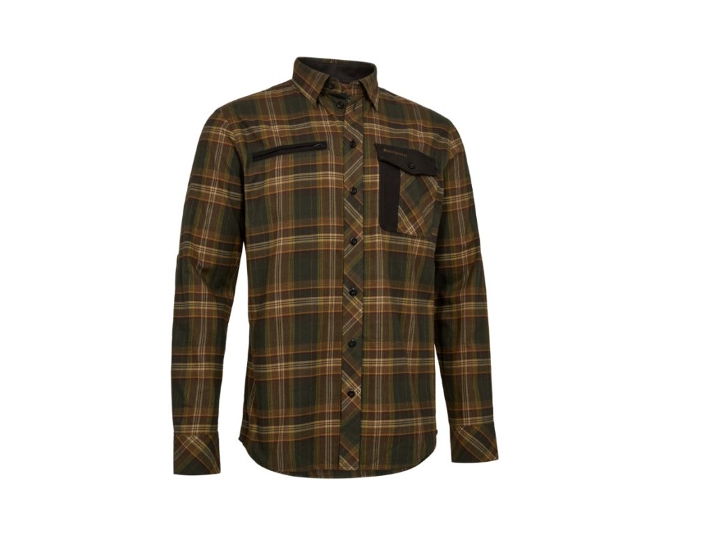 Myslivecká košile se zeleno-hnědou kostkou.
