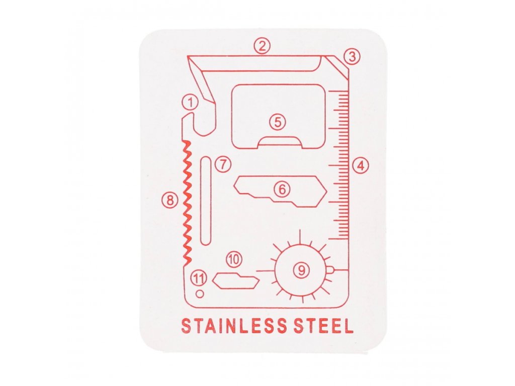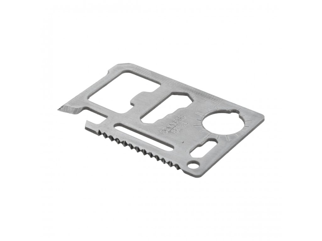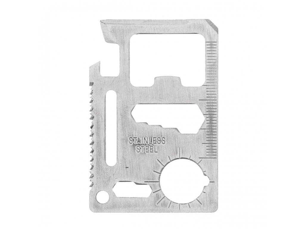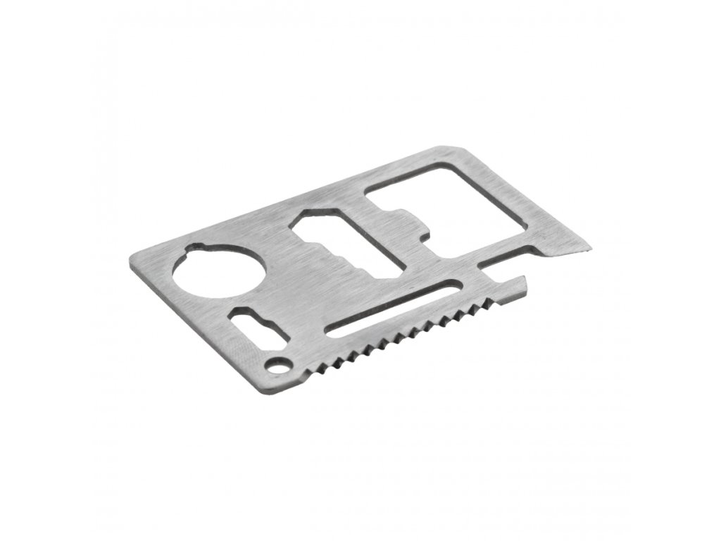 Tato karta nabízí hned 10 praktických funkcí v jednom malém nástroji – od otvíráku na láhve a konzervy, přes šroubovák a klíč, až po pilku a pravítko. Snadno tak zvládnete drobnou opravu, otevřete konzervu na táboře nebo změříte potřebnou vzdálenost v terénu. Je to skutečná mobilní „mini-dílna“, která nezabírá žádné místo, ale dává vám nespočet možností.