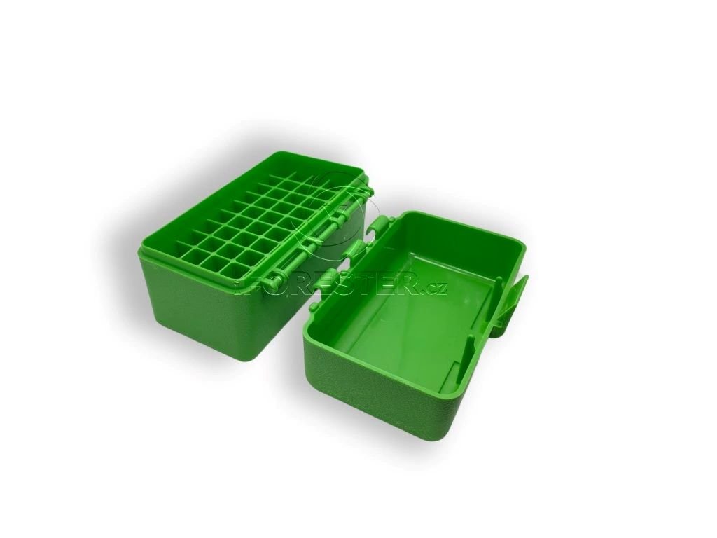 Dobře uzavíratelná krabička na 50 ks nábojů pro vícero ráží. Díky krabičce máte přesný přehled o počtu vystřelených nábojů a kontrolu nad jejich přepravou. Do jedné krabičky se vejde 50 kusů nábojů. Spodní a vrchní díl lze od sebe snadno oddělit, krabičku tedy nelze zlomit a tudíž ji učinit neupotřebitelnou.
