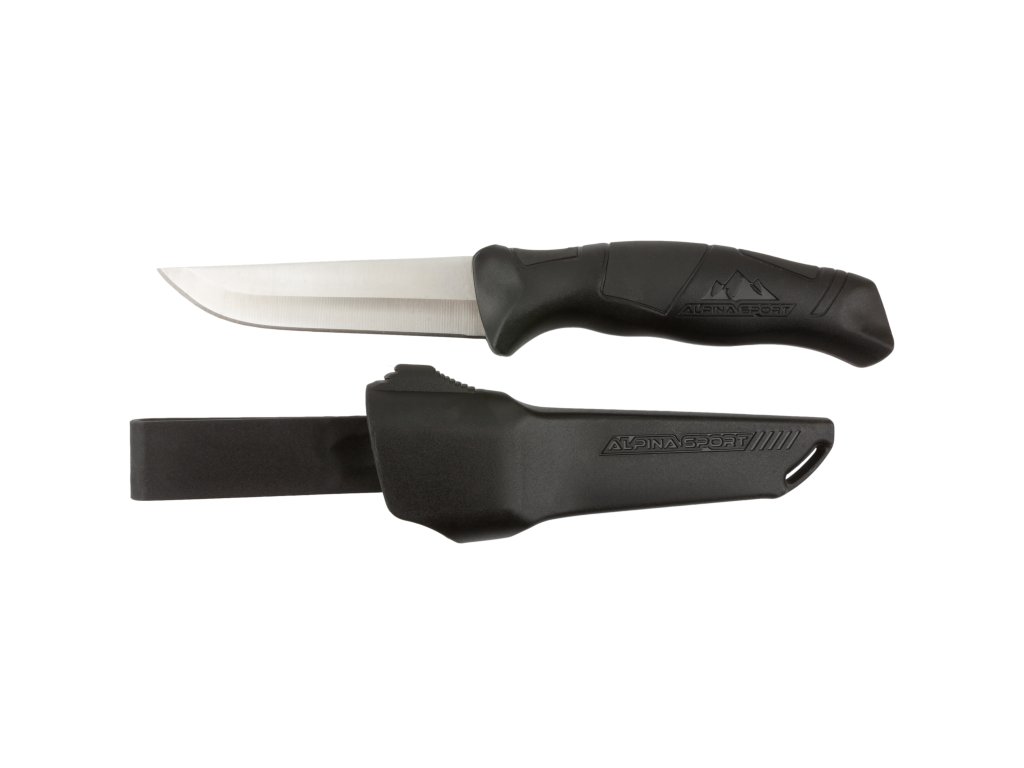 Nůž s plastovými střenkami Alpina Sport Ancho s pevnou čepelí a hladkým ostřím. Univerzální čepel je vyrobená z oceli 420.