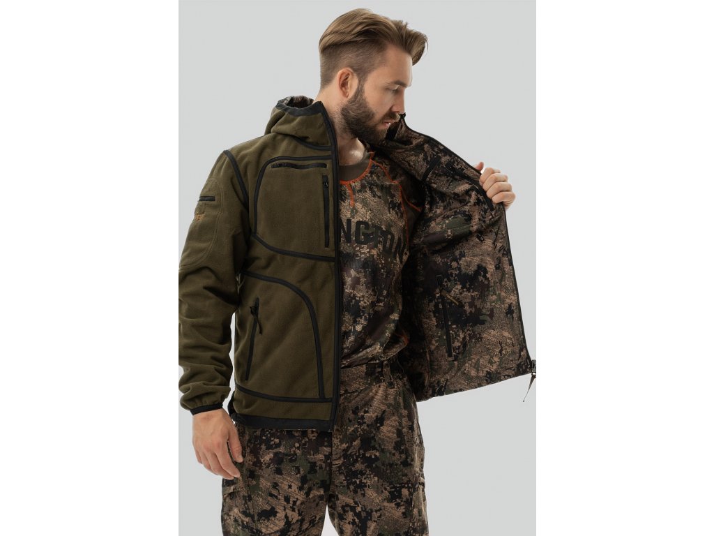Remington Universal Jaeger in Timber is part of the serieswindproof, low-noise garments. This costume is designed for hiking, hunting, fishing, but also extreme hiking and traveling. The upper side of the suit is made ofstrong but lightweight and breathable fleece. The jacket is reversible, made of warm fleece and thus provides a wider use.