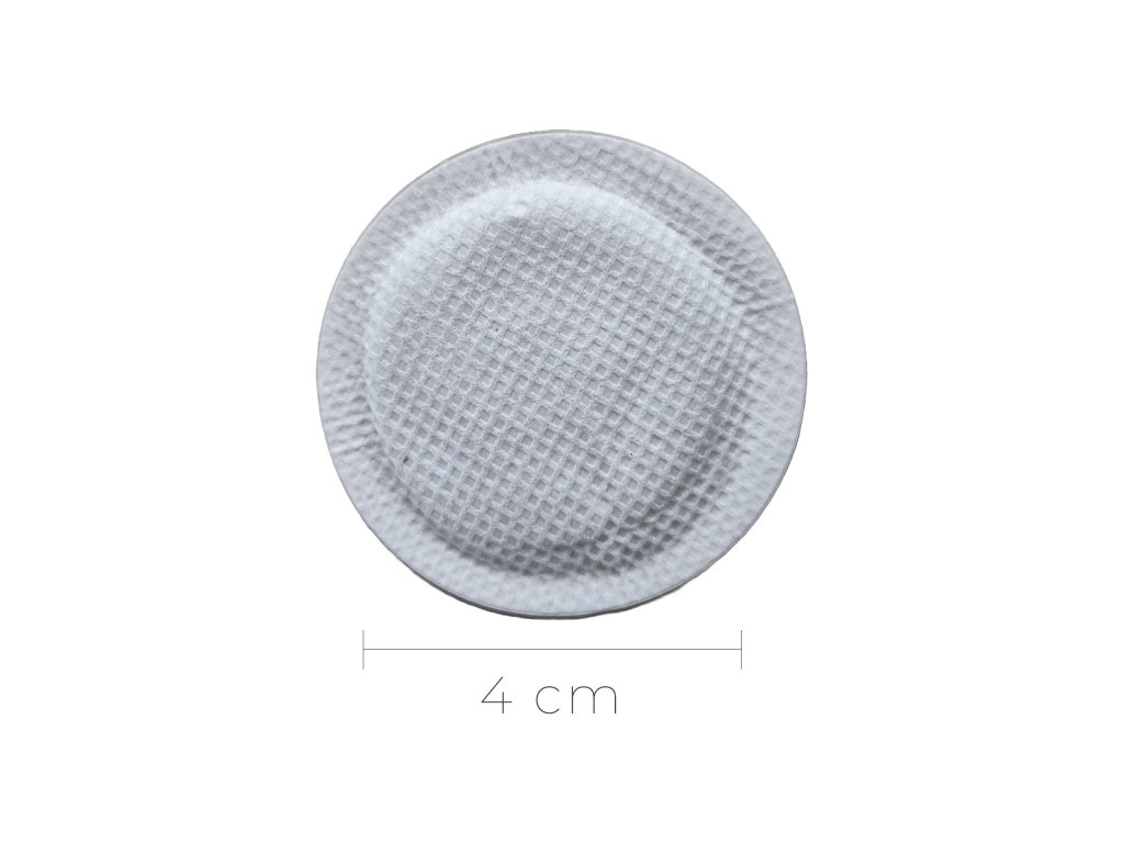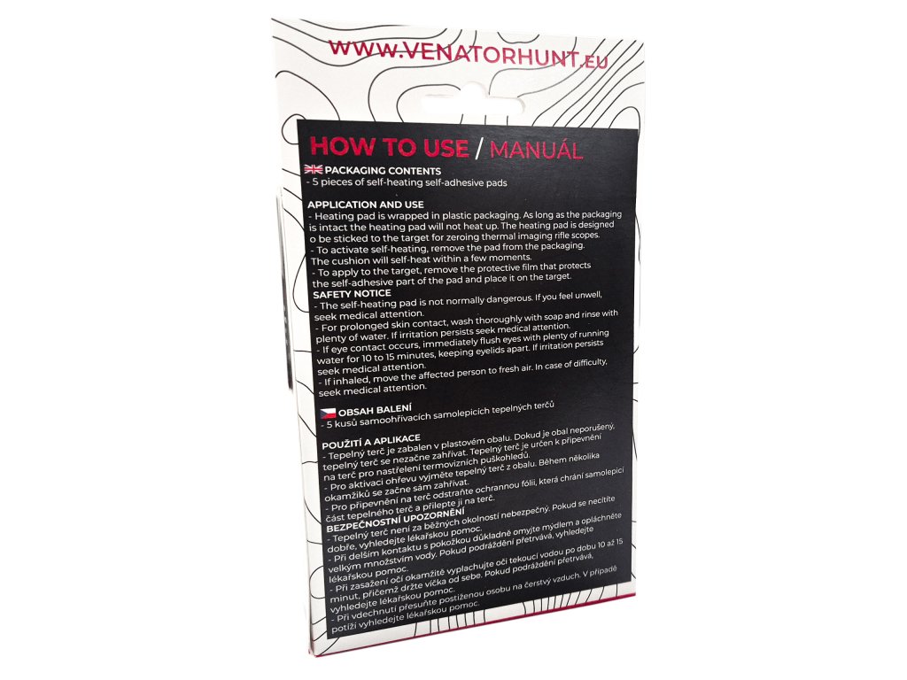 Self-adhesive thermo target. Activation of heating automatically after unpacking. Warm up time up to 10h. Temperature 60°C+. Diameter of the heating part 4cm. 5 pieces per pack