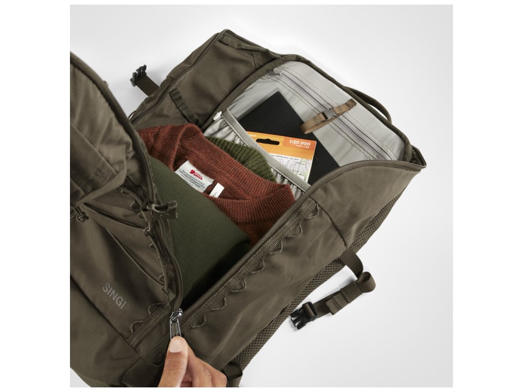 Batoh Singi 48 s objemem 48 litrů je ideální pro pěší túru nebo při rybaření či lovu. Hlavní přihrádka má dlouhý zip pro snadný přístup. Ti co si batoh vyberou na každodenní užívání jistě ocení vnitřní kapsu pro notebook. Batoh lze přizpůsobit pomocí příslušenství Singi pro další úložný prostor – jako je například držák Singi Gear či boční kapsy Singi.