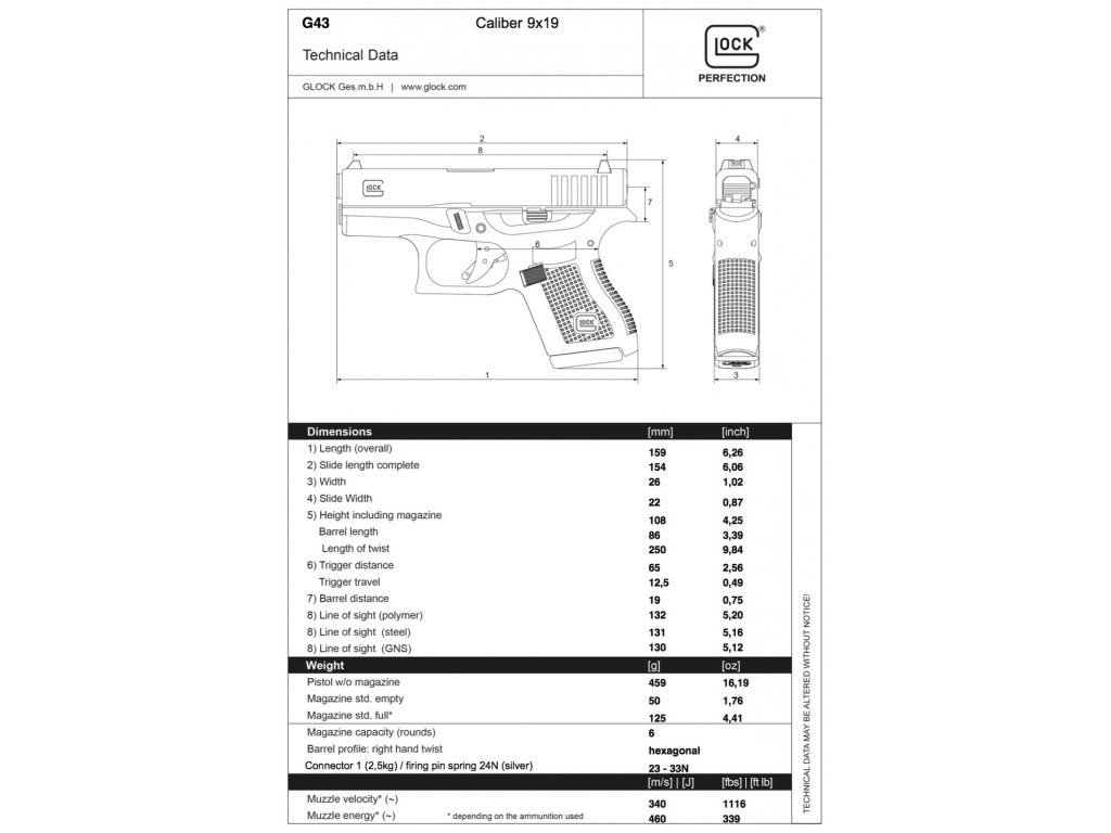 Krátká a moderní ruční palná zbraň kompaktní velikosti z produkce rakouské zbrojovky Glock. Model s označením Glock 43 v ráži 9 mm Luger je pistole určená pro možnost skrytého nošení a díky své ráži i pro čestější použití na střelnici.
