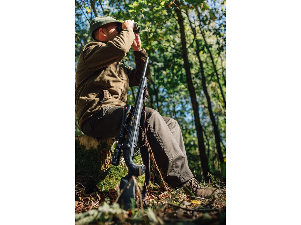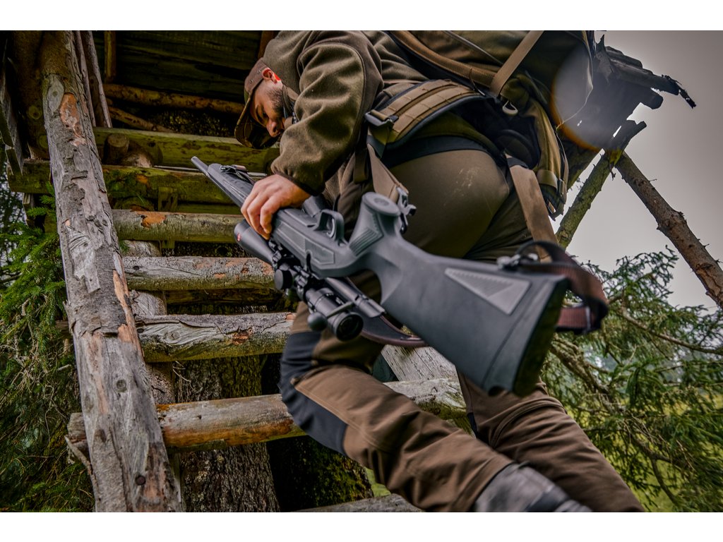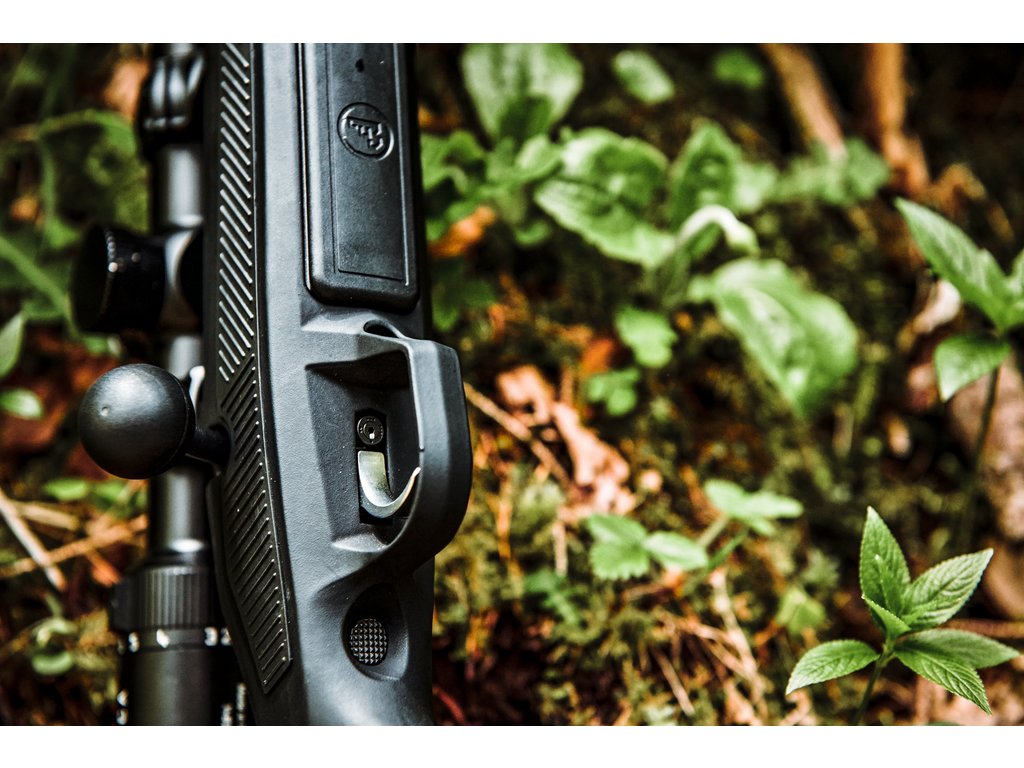 Patentovaná tichá ergonomická oboustranná (Silent – Ergonomic – Ambidextrous) vertikální pojistka nad pistolovou rukojetí umožňuje rychlou a tichou aktivaci, což zajišťuje maximální nenápadnost a bezpečnost při lovu v hustém porostu i na otevřených plochách.