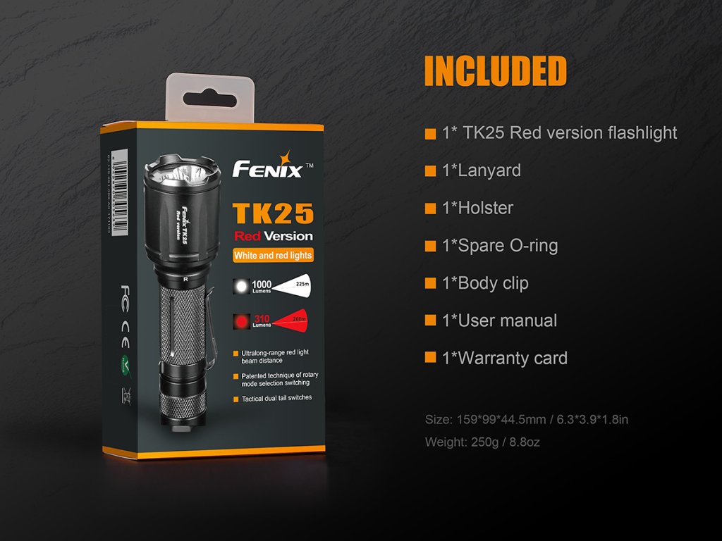 Parametry LED svítilny Fenix TK25 Red: