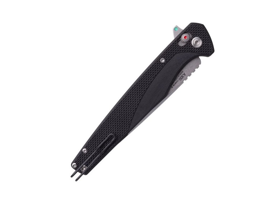 V zadní části rukojeti se nachází kontrastní červené spacery, které zpevňují konstrukci střenek a také doplňují charakteristický černo-červený design řady A. Nůž je vybaven oboustranným deep pocket carry klipem, který zajišťuje diskrétní nošení.