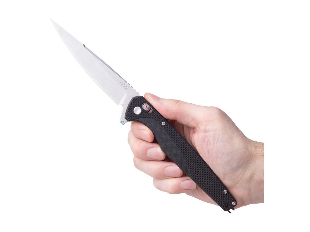K dispozici jsou dvě varianty – s flipperem nebo oboustranným kolíkem. Obě verze se hladce otevírají díky ložiskům a pojistka, jak je u řady A zvykem, je spolehlivý A-lock. Konstrukce se opírá o frézované střenky z černého materiálu G10, které kombinují ergonomii, nízkou hmotnost a příjemný dlouhý úchop.