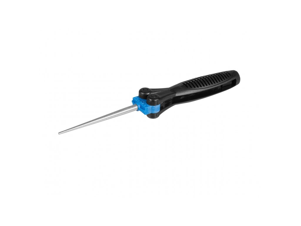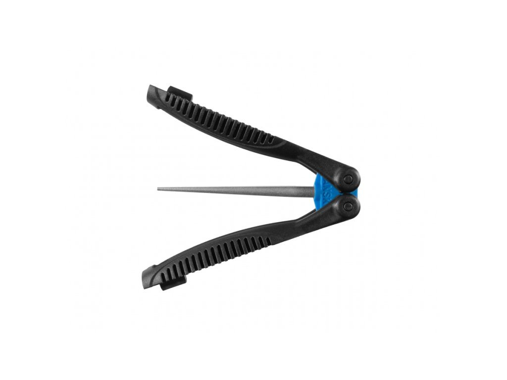Nylonová rukojeť s tvarovaným profilem chrání ruku při ostření a díky možnosti rychlého složení je brousek zároveň velmi praktický na přenášení.