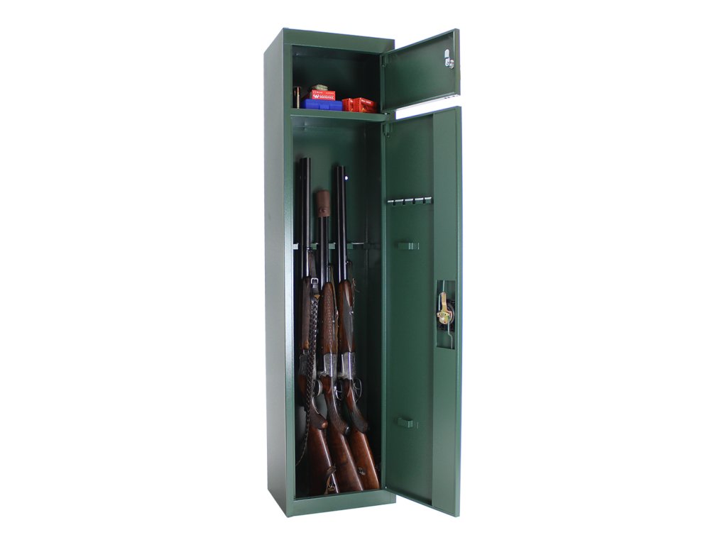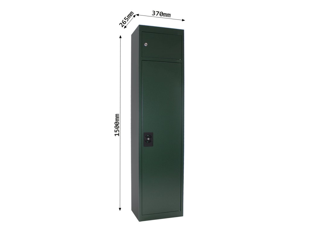 Hlavní výhody: Cylindrický zámek s 2 klíči Prostor pro 5 dlouhých zbraní Kvalitní povrchová úprava Jednoplášťová skříň Samostatná schránka (250 mm) s cylindrickým zámkem a 2 klíči Zelená skříň na zbraně spolu se samostatnou vnitřní schránkou nabízí dostatek prostoru pro vaše dlouhé zbraně. Celkově až 5 dlouhých zbraní uskladníte uvnitř skříně a do horní schránky lze uložit např. munici. Kvalitní ocel zajistí, že vaše zbraně budou v bezpečí před nežádoucím zacházením a zároveň pěkně uskladněny. Skříň je vybavena otvory na zadní a spodní straně a spolu s dodávaným materiálem pro upevnění ji snadno zafixujete na místě. Verze Cargo je dodávána v odolnějším obalu, který zajistí podstatně nižší šanci na poškození během přepravy. Tato skříň není certifikována. Pro tuto schránku na zbraně je stanoveno, že při přechovávání dlouhých zbraní do počtu 2 ks nebo do 500 ks nábojů plati prohlášení o shodě.Doplňkové parametry