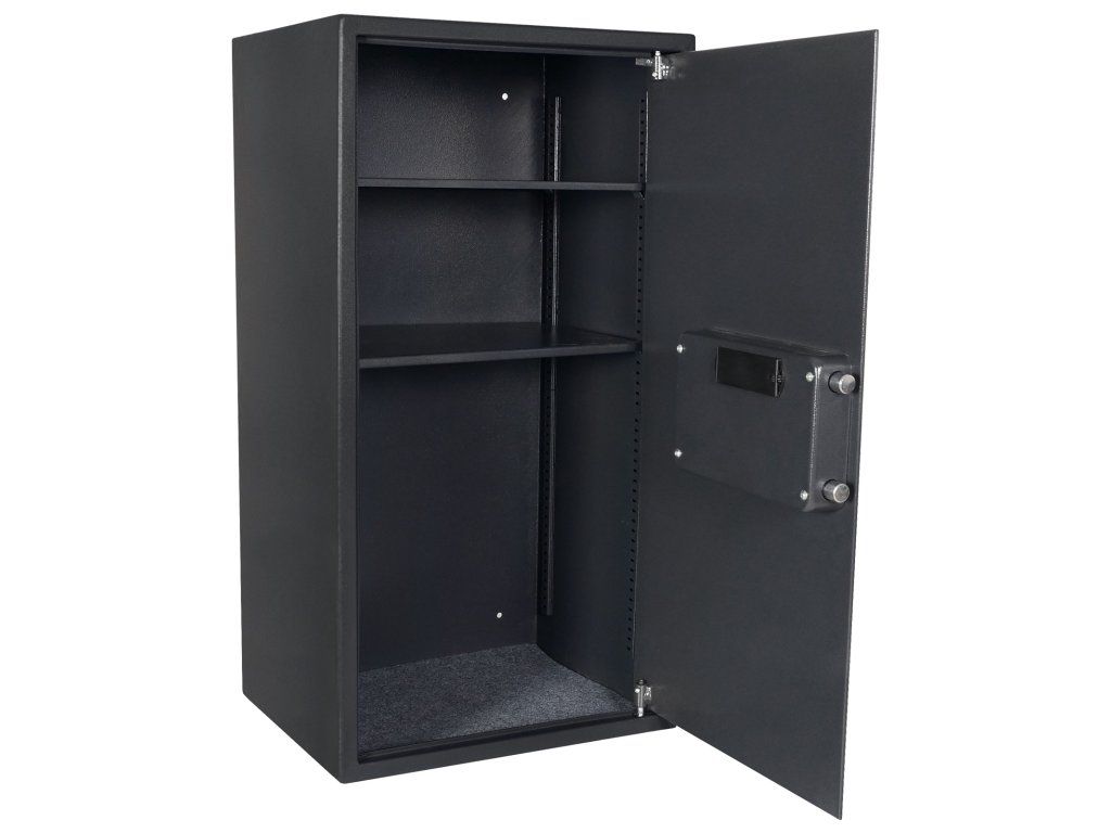 Hlavní výhody: Elektronický zámek Napájení 4 x 1,5V AA bateriemi (nejsou součástí balení) Jednoplášťový sejf 2 police vyjímatelné Nouzové mechanické otevírání Otvory pro ukotvení na spodní i zadní straně trezoru Nábytkový sejf z modelové řady Jupiter má elektronický zámek s napájením 4 x 1,5V bateriemi (nejsou součástí balení). Uvnitř sejfu najdou své místo malé cennosti, doklady, hodinky nebo menší šperky. Sejf lze ukotvit prostřednictvím připravených otvorů na spodní i zadní straně. Materiál pro ukotvení je součástí balení. Pro tuto schránku na zbraně je stanoveno, že při přechovávání krátkých zbraní do počtu 2 ks nebo do 500 ks nábojů plati prohlášení o shodě.Doplňkové parametry