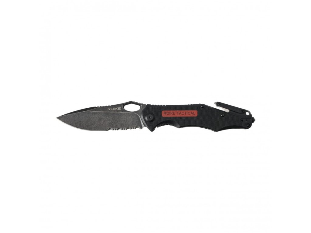 Ruike M195 je velký záchranářský nůž vybavený částečně zubatou čepelí z uhlíkové oceli D2, tvarovanými střenkami z laminátu G10 a typickou sadou záchranářských nástrojů — čepelí pro řezání bezpečnostních pásů a hrotem na rozbíjení skla.