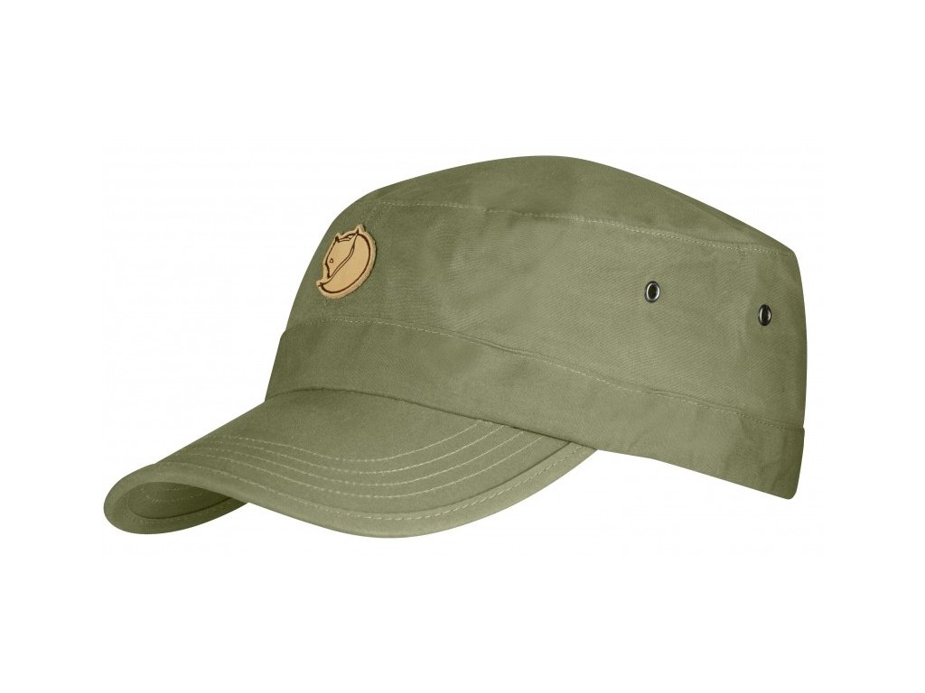 Klasická čiapka s plochým vrcholom Fjällräven G-1000 z uvedeného materiálu. Čiapka s kšiltom s vetracími otvormi a nastaviteľnou zadnou časťou. Malé kožené logo značky na prednej straneFjällräven.