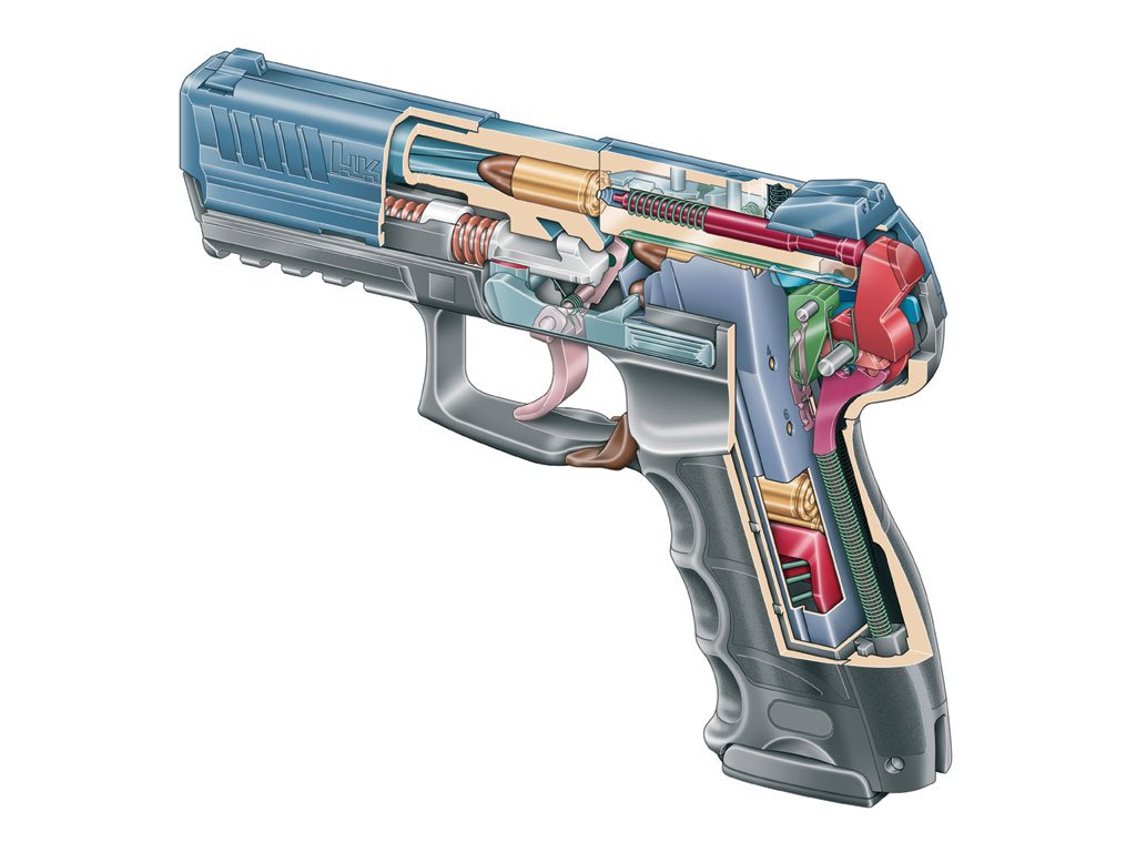 Spúšťací mechanizmusoznačený výrobcomHeckler Koch akoV3 (SA/DA)je vyladený na používanie v službách.každodenné skryté nosenie. Spúšť má dlhší, ale jasný a hladký chod a reset nastavený primerane tejto charakteristike.