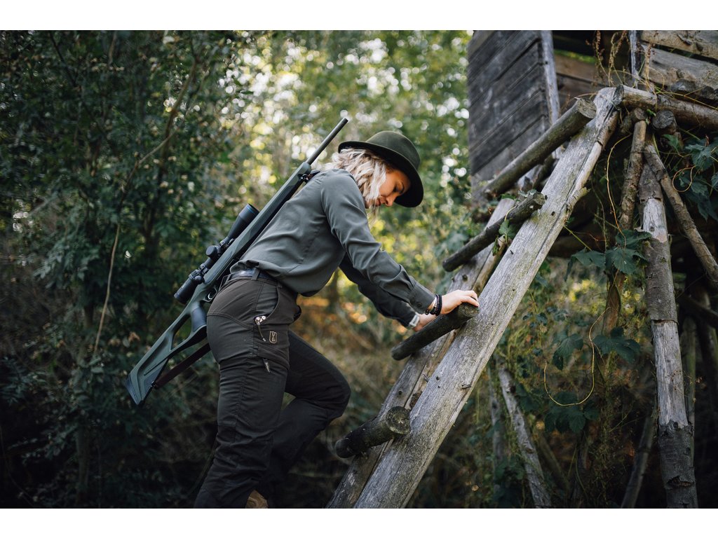 Patentovaná tichá ergonomická oboustranná (Silent – Ergonomic – Ambidextrous) vertikální pojistka nad pistolovou rukojetí umožňuje rychlou a tichou aktivaci, což zajišťuje maximální nenápadnost a bezpečnost při lovu v hustém porostu i na otevřených plochách.