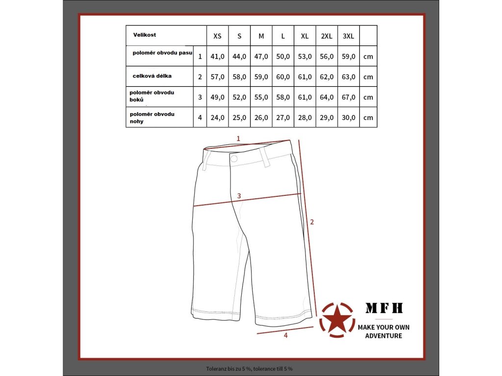 Šortky sú vyrobené z 100 % bavlnapričom ichodolnosťzabezpečí štruktúru RipStop.Vďaka tejto štruktúre je zabránené šíreniu prípadných trhlín.