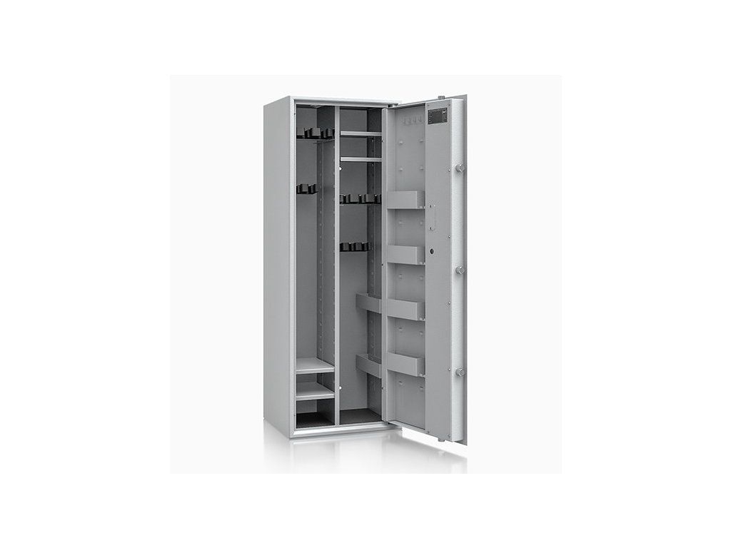 Vnitřní vybavení umožňuje uložení až 12 dlouhých zbraní – k dispozici je magnetický posuvný pěnový držák (55 mm) pro 3+3 zbraně a posuvný pěnový držák na kolejnicích (65 mm) rovněž pro 3+3 zbraně. Dále jsou uvnitř 2+2 výškově nastavitelné police a dva odkládací boxy umístěné v pravé části.