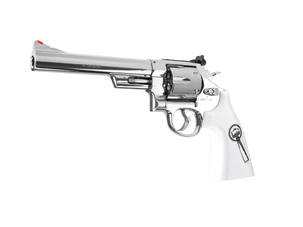 CO2 revolver Smith & Wesson 629 Trust Me 4.5 mm Diabolo je věrnou replikou legendárního revolveru v ráži 4,5 mm Diabolo. Model dokonale kopíruje originální revolver Smith & Wesson a kombinuje klasické linie s moderní technologií a stylovými střenkami s tematickým gravírováním. Charakteristickým prvkem je realistické nabíjení pomocí nábojnic napodobujících skutečné střelivo. O pohon se stará 12g CO2 bombička umístěná v rukojeti.