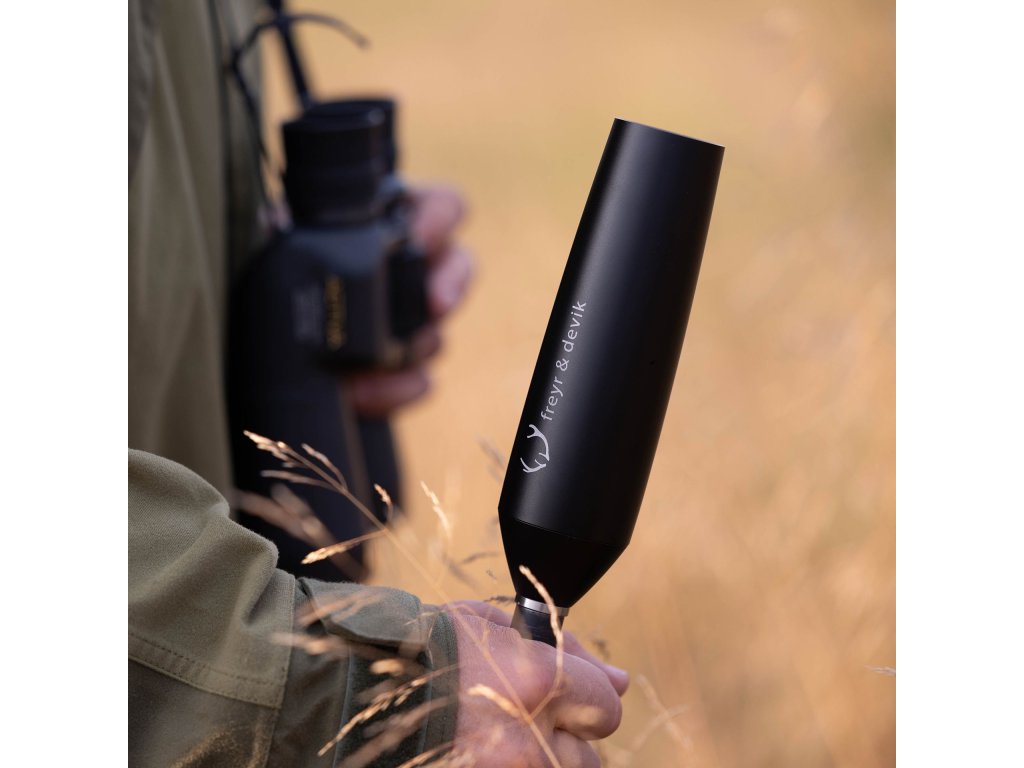 Freyr & Devik je synonymem pro účinné, elegantní a ultralehké tlumiče s bezkonkurenčním poměrem útlumu hluku a hmotnosti. Zde se spojuje forma a funkce a vzniká tlumič, který ladí s klasickými liniemi lovecké pušky. Elegantní, zaoblený tvar je zároveň vysoce funkční. Přispívá k nízké hmotnosti tlumiče a zároveň mu umožňuje klouzat vegetací. Tento jedinečný design je oceněn prestižní cenou RedDot za design.