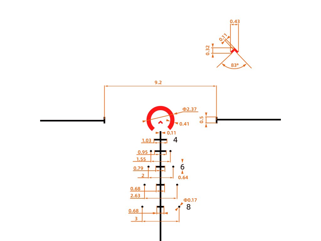 Záměrná osnova typu VCT-BNV je vyleptaná přímo do skla a umístěna v první fokální rovině (FFP) – její velikost se tak mění v závislosti na zvoleném zvětšení. Tato konstrukce umožňuje přesné odhady vzdáleností a držení korekcí v jakémkoli zvětšení. Kříž je podsvícen červenou barvou s více úrovněmi jasu, napájený běžnou baterií CR2032 (není součástí balení).