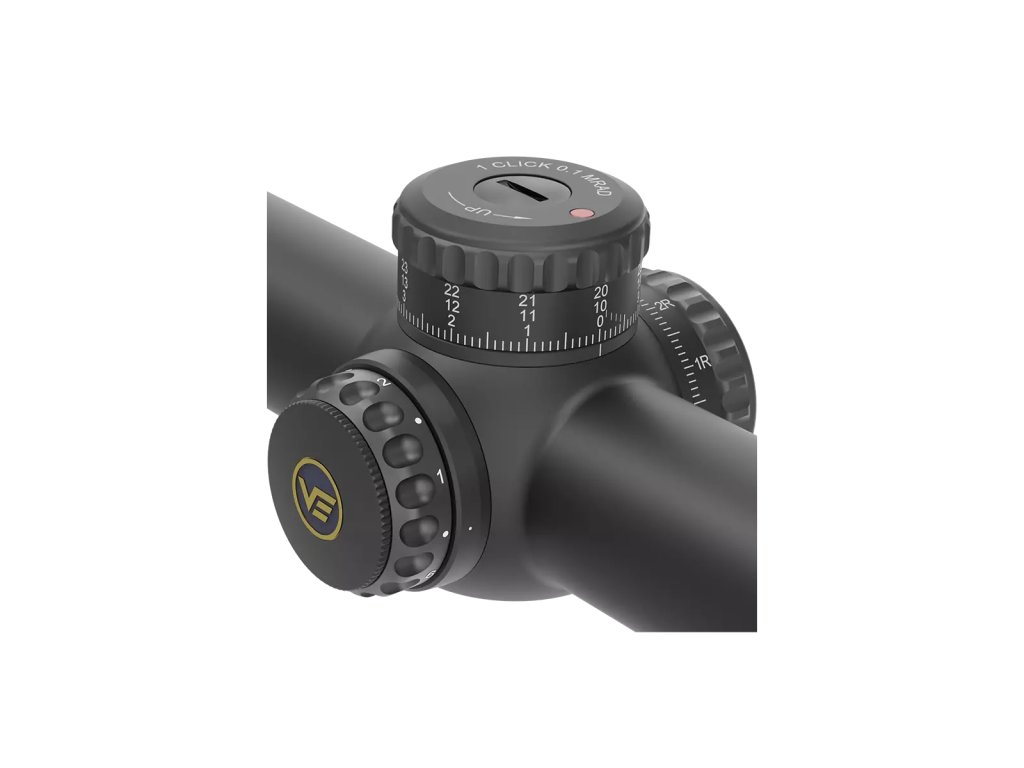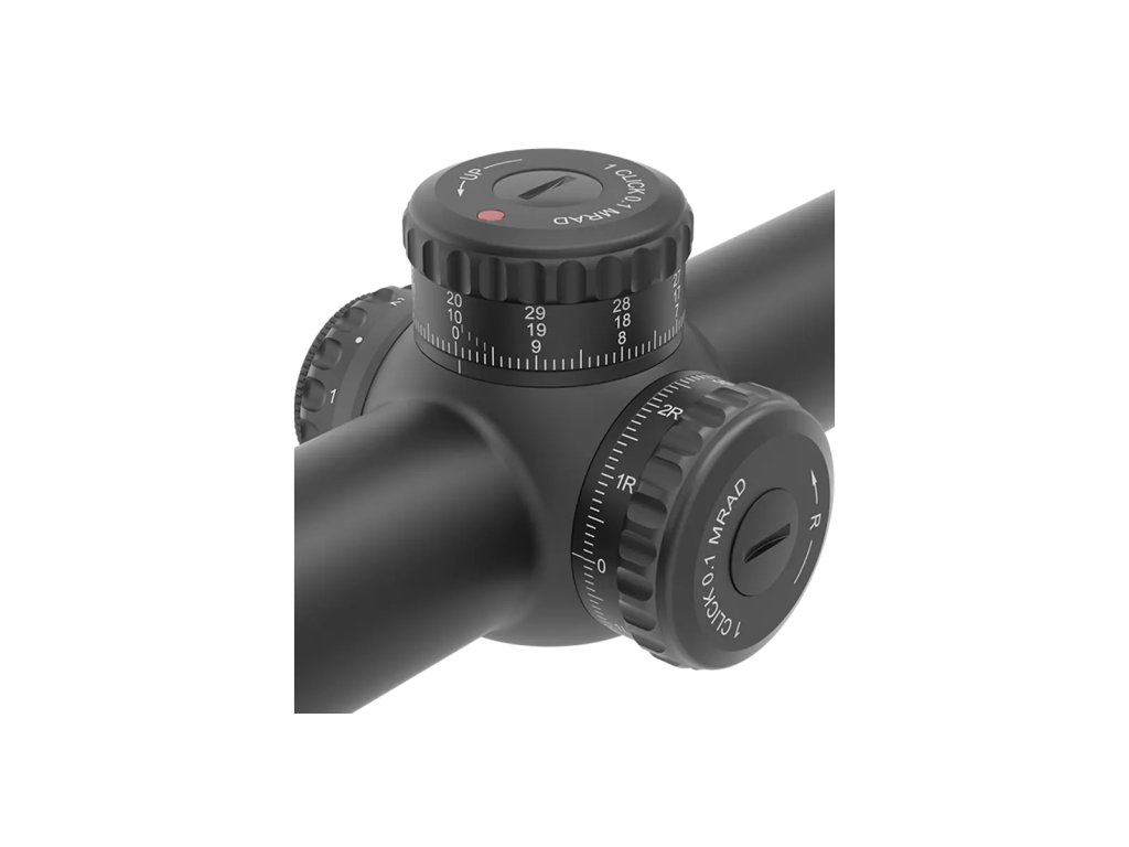 Nastřelovací věžičky umožňují precizní nastavení po 1/10 MIL, přičemž výšková korekce je doplněna o funkci Zero Stop pro rychlý návrat do nulové pozice. Boční komínek je uzamykatelný, čímž se zabrání náhodnému posunu nastavení v terénu nebo při manipulaci.