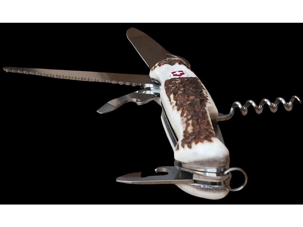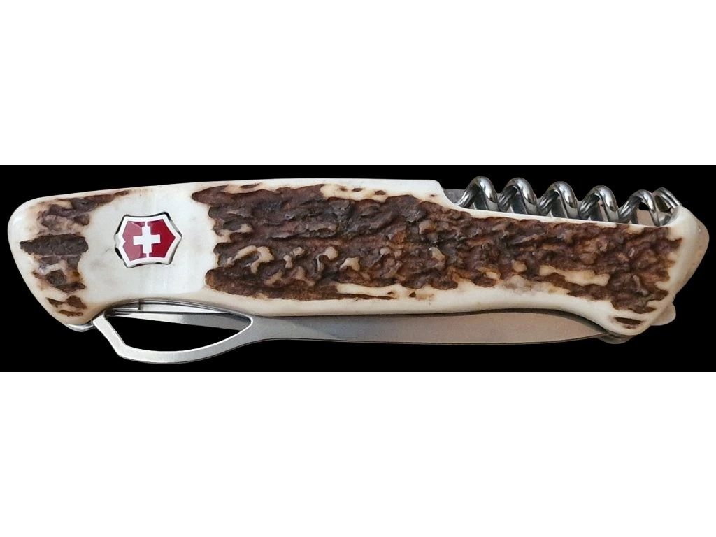 Originál lovecký nůž švýcarské firmy Victorinox s profesionálně zpracovanými ergonomickými parohovými střenkami. Tento osvědčený kapesní nůž je vybaven pojistkou hlavní čepele Liner Lock System proti zavření. Lovci jistě ocení kvalitní pilku a v případě potřeby potěší i otvírák na lahve s plochým šroubovákem a odstraňovačem izolace drátů, otvírák na konzervy s malým šroubovákem, výstružník / průbojník, vývrtka nebo kroužek na klíče.
