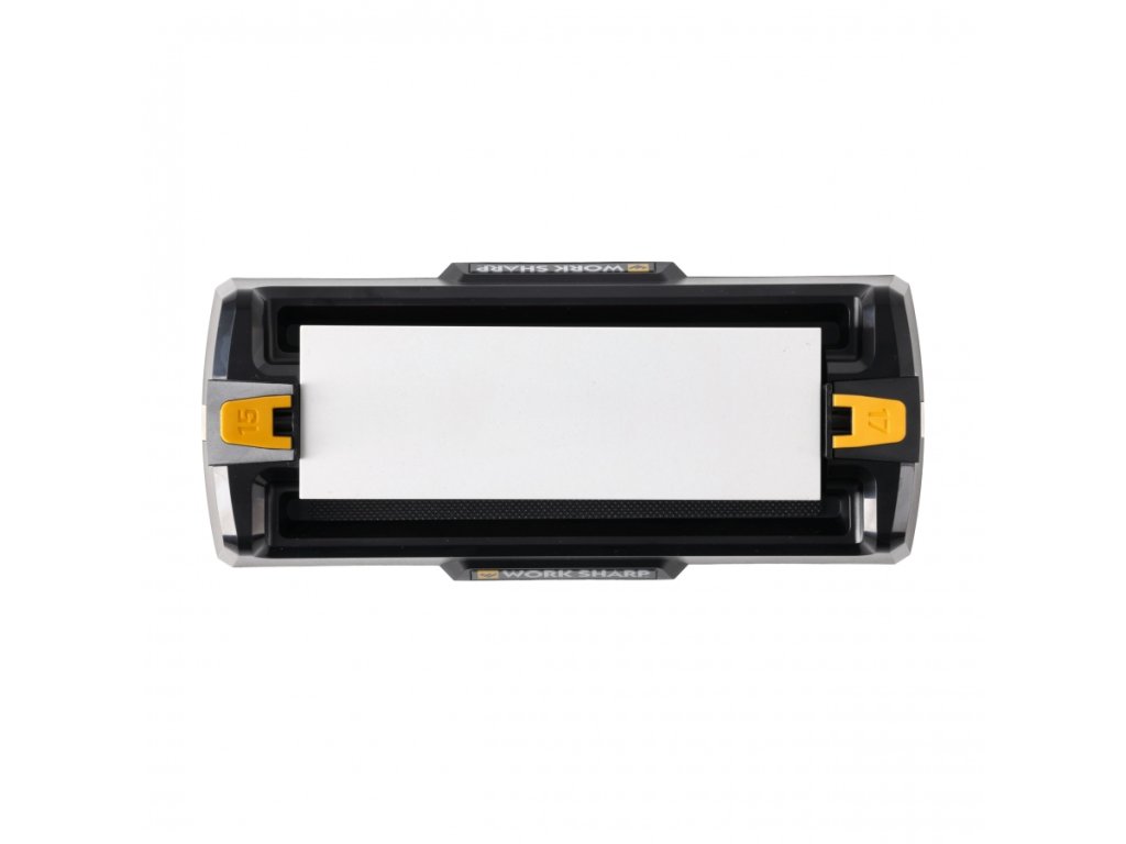 Brousek Work Sharp Whetstone je vybaven magneticky uchycenými vodítky pro úhly 15° a 17°. Po přiložení čepele k vodítku stačí táhnout nůž rovnoměrně po brusné ploše při zachování konstantního úhlu.